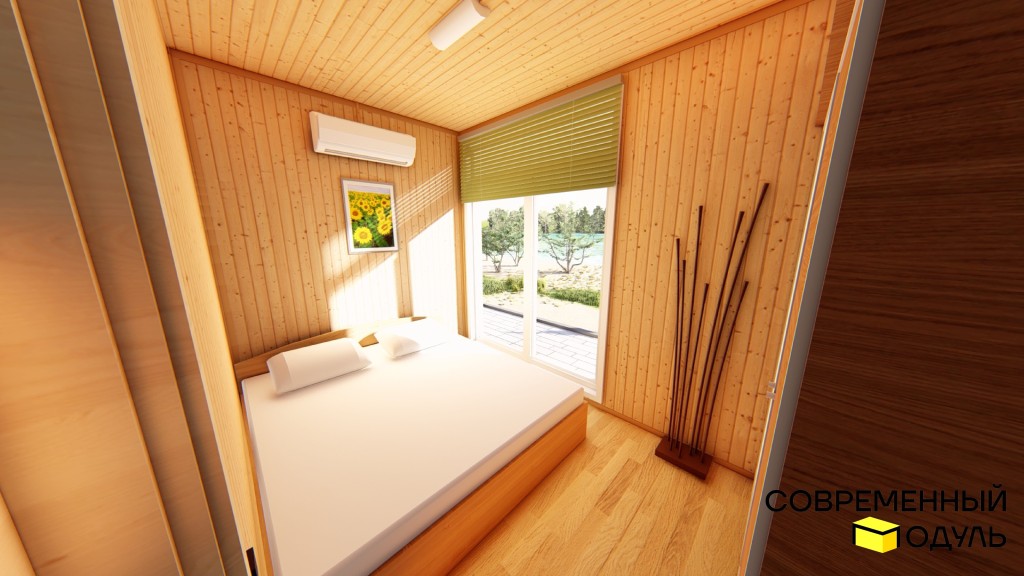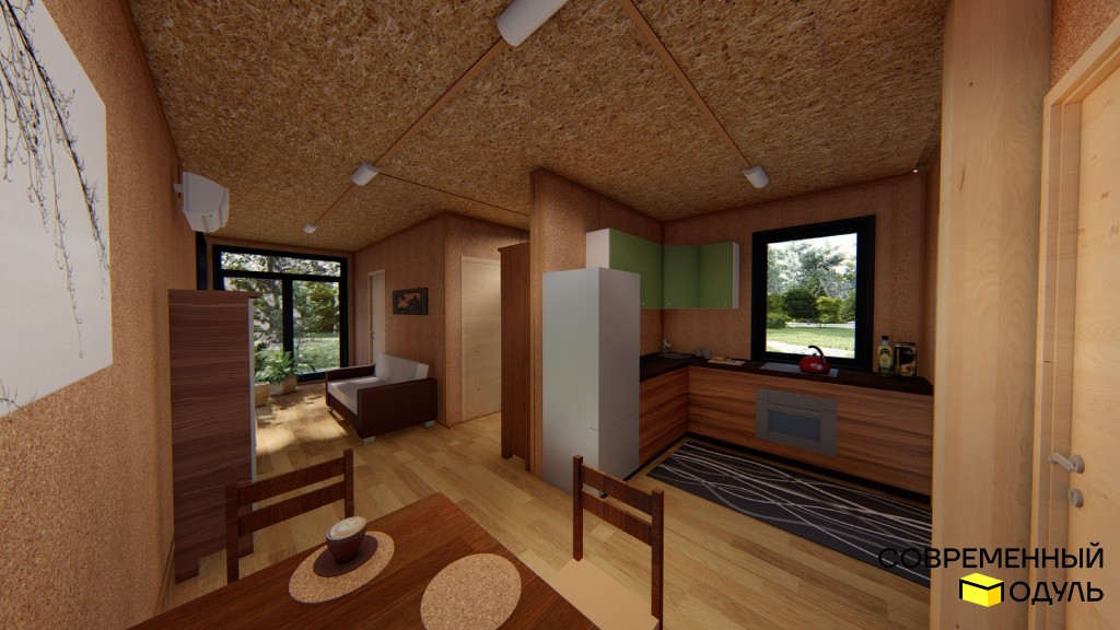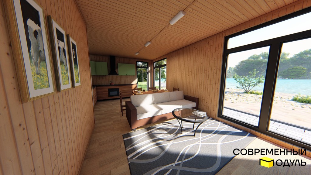 Модульный домик габаритный, его несложно погрузить на любой подходящего размера транспорт и доставить. Собрать, установить и отделать не составит большого труда и времени.