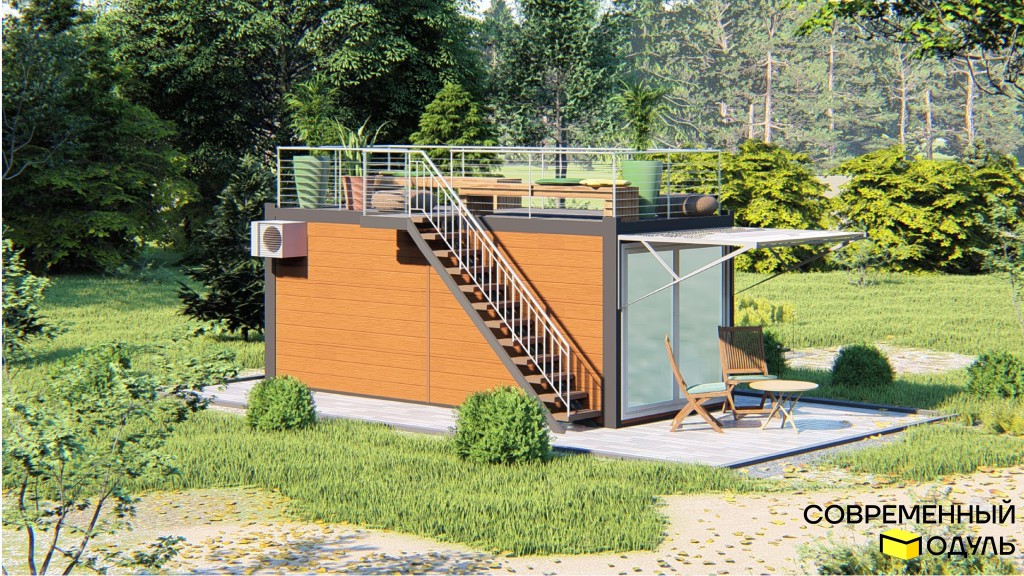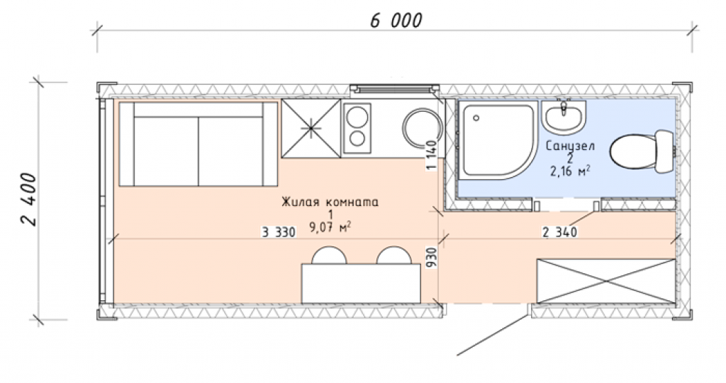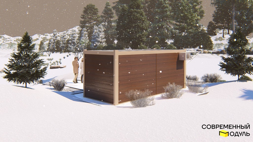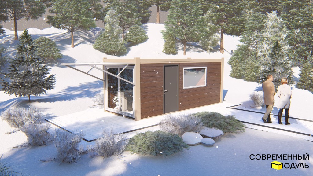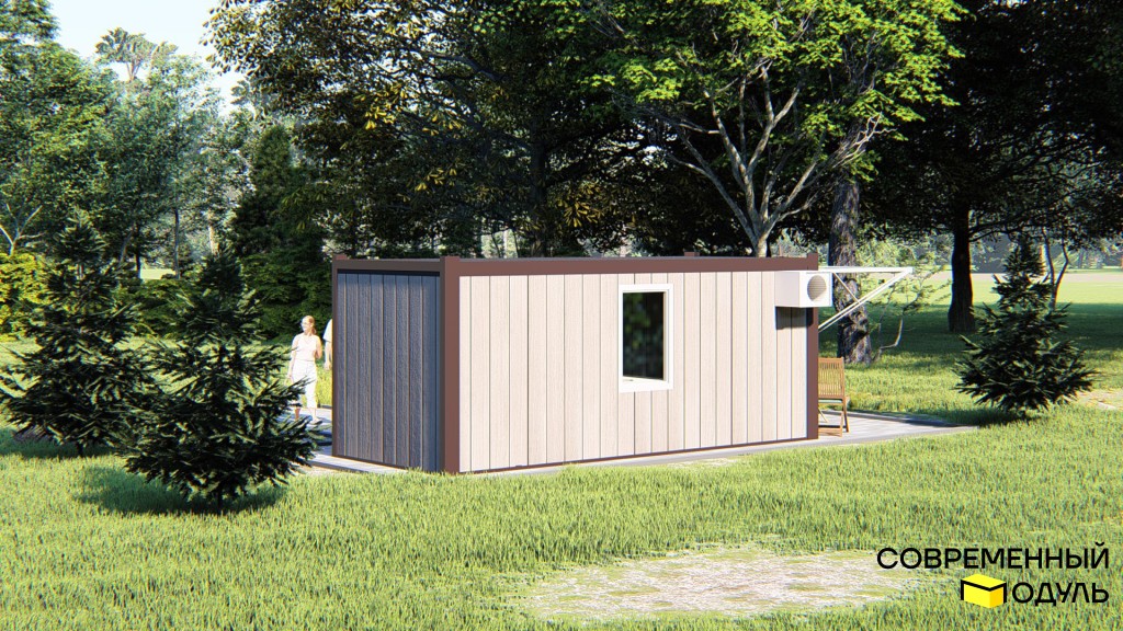 Размеры модуля: длина – 6,00 м, ширина – 2,40 м. Домик габаритный и мобильный, легко грузится, доставляется и устанавливается.