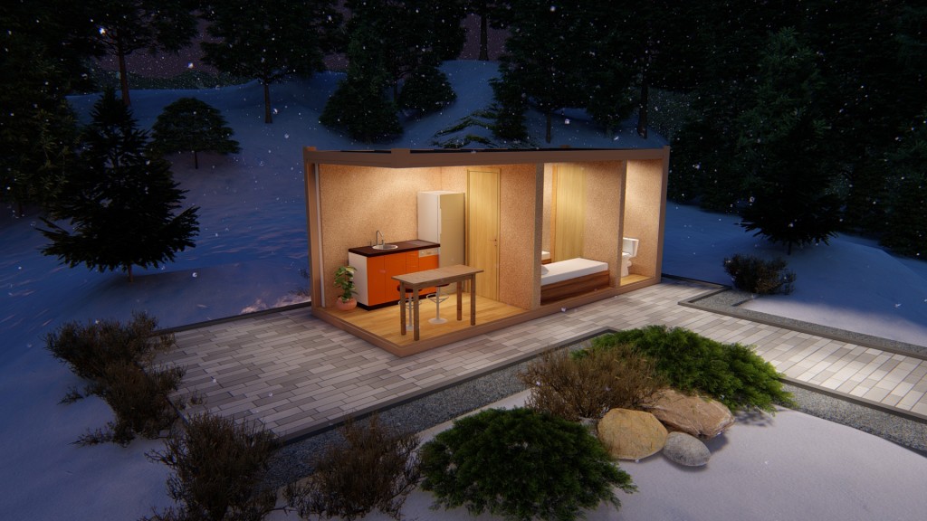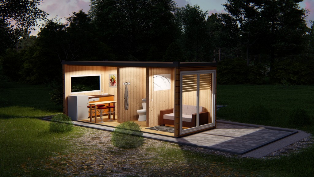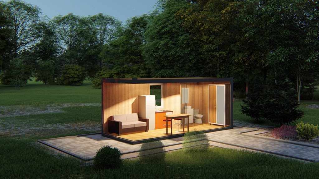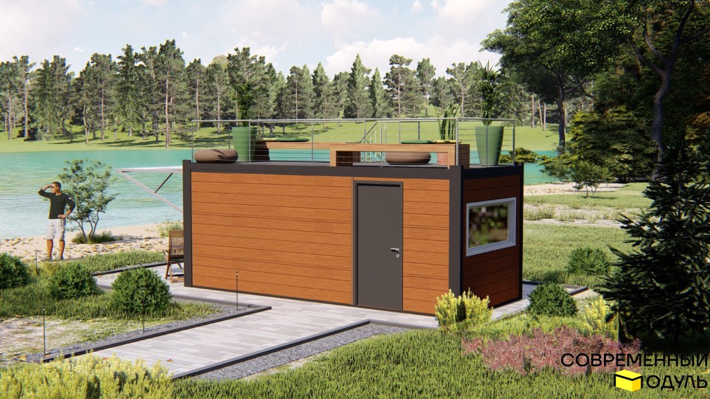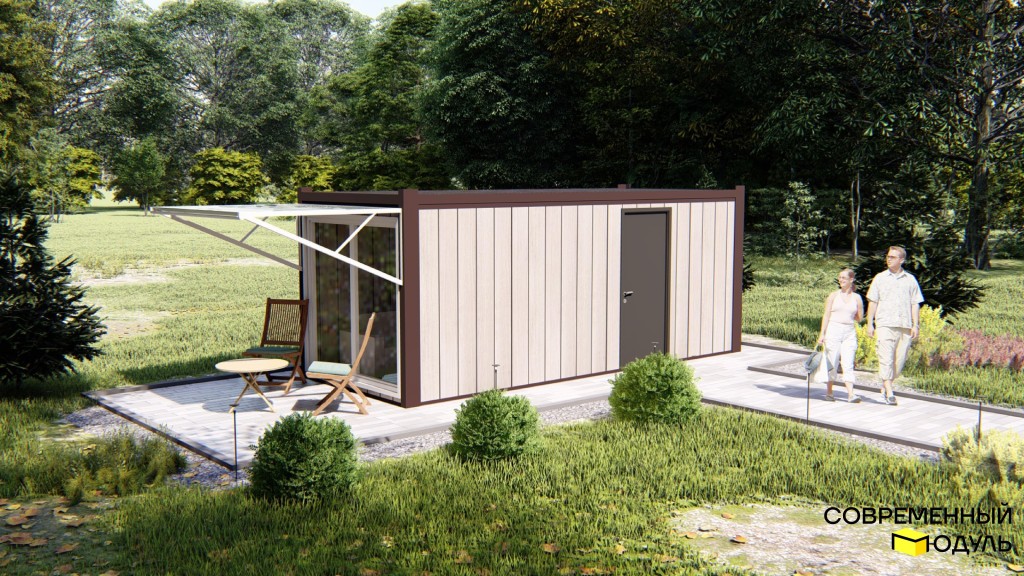 Приобрели участок и хотите быстро построить домик для отдыха? Приехали родители или дети, а у вас не хватает для них места? Купите гостевой дом – модуль «Мини» площадью около 12 квадратных метров, легко монтируемый в течение 6 часов. Компактное строение обладает аккуратным внешним видом в сочетании с удобной планировкой помещений.